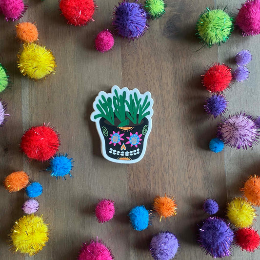 Pink Princess Hand Illustrated Plant in a Calavera Pot Greeting Card