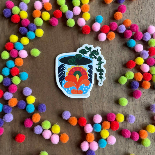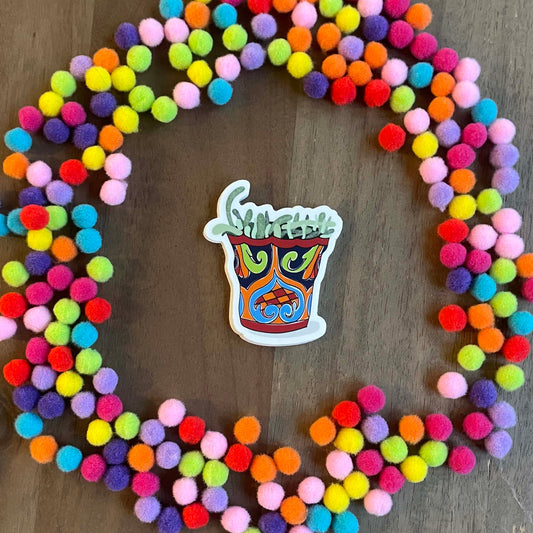 Plantas in a Pig Shaped Talavera Pot Hand Illustrated Sticker