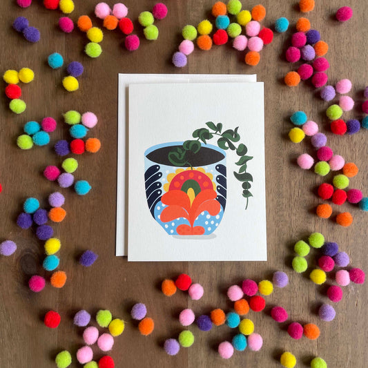 Cactus Plant in a Talavera Pot Hand Illustrated Greeting Card